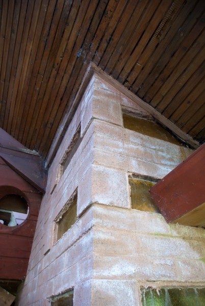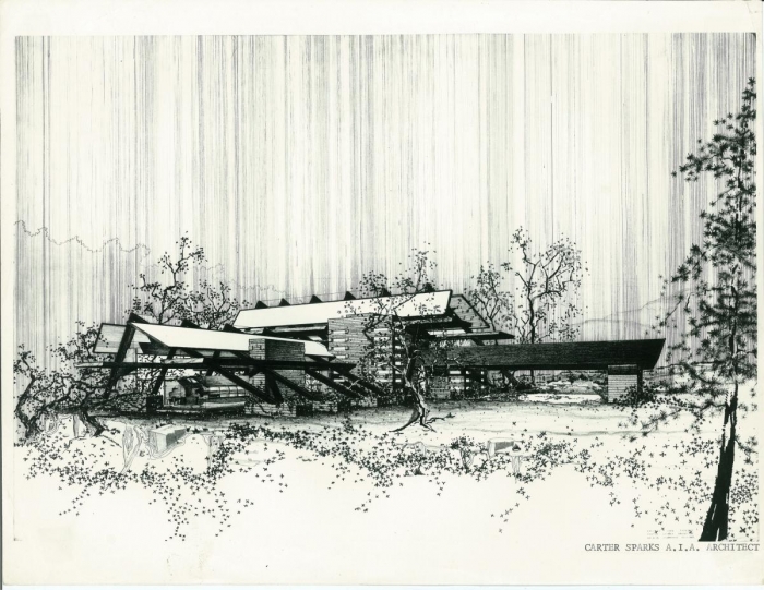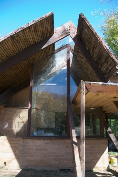 One of Sparks' earliest known works, it shows a sometimes reckless creative ambition that many of his later works do not. FLW's influence hovers like a ghost in the spaces, angles and flow. It's nice to see that the kitchen showed some respect for the homeowners, affording them a open view and soaring 15' panes of glass above the sink. You could be washing dishes, or you could be in church.
