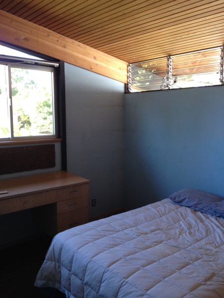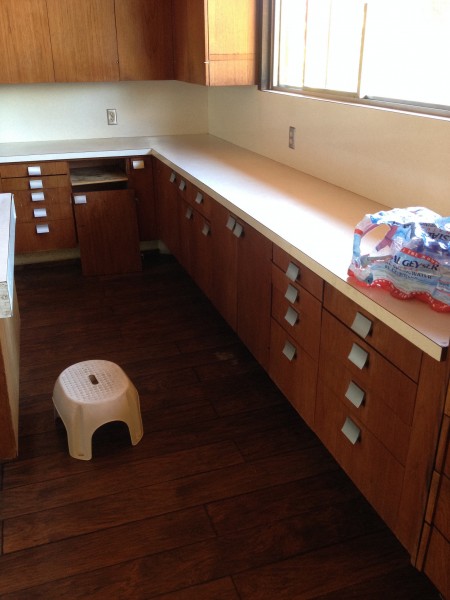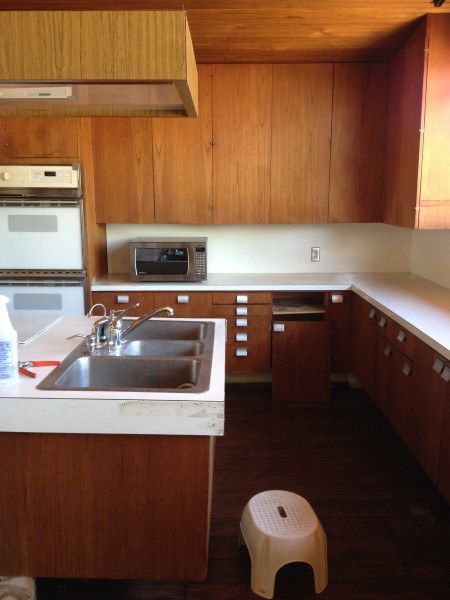 Kitchen cabinets are Teak, and adjacent Office cabinetry is Jerusalem cedar I believe. Original kitchen stove hood was a clear lucite tube. Mrs Pinnegar used to have an outdoor clothesline by the fireplace where she would make the short walk from the laundry room to the back deck to hang the clothes.