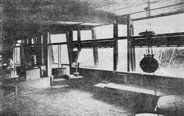 Beam structure of the rear portion of the home slant skyward from interesting lineal effect. Photos by Don Minnick