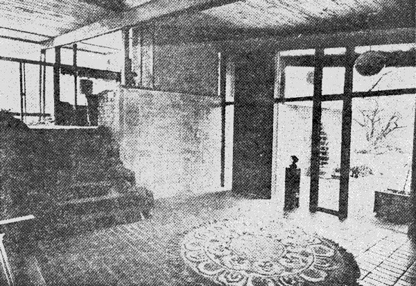The interior runs close to the exterior for first place honors in interesting detail category. Slat wood partitions in the living room and dining area contribute a feeling a spacious freedom to the home. Floor levels are joined together by a curving foundation of lava rocks upon which are placed polished mahogany steps, coupled with high cedar ceilings, all add up to tasteful design touches inside a comfortable home.